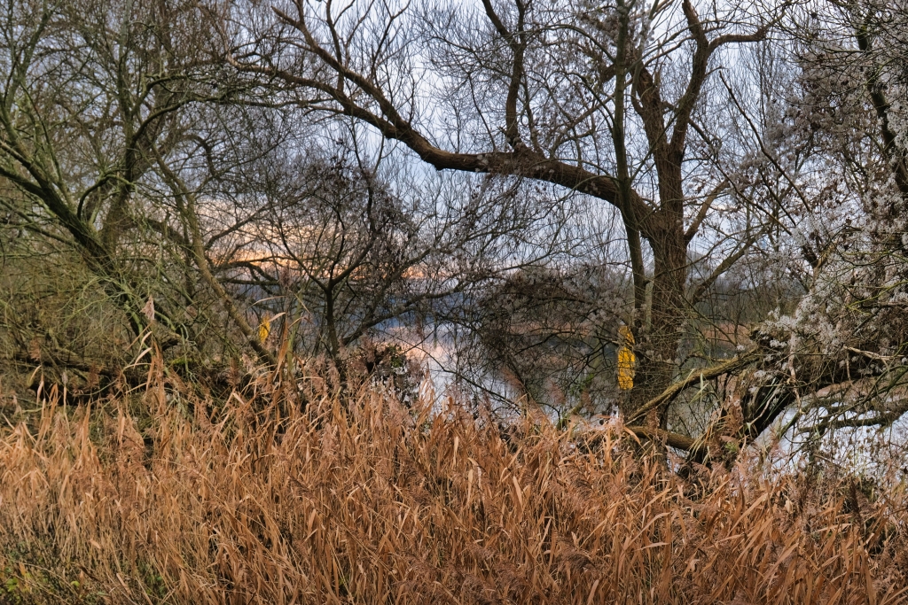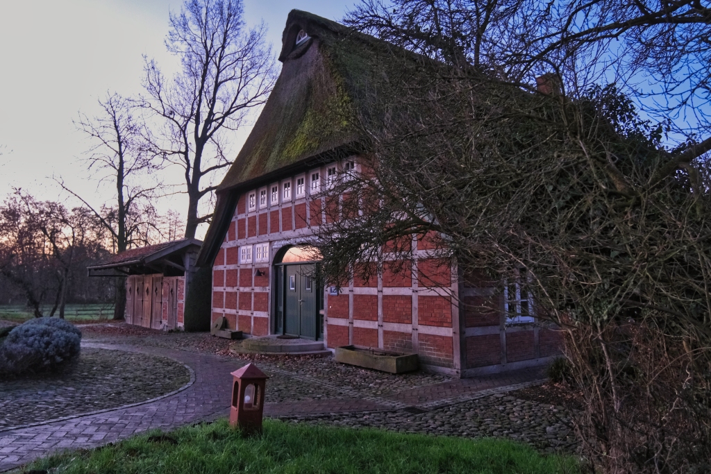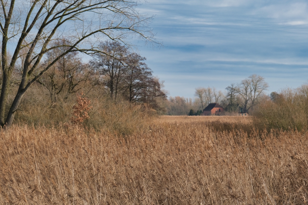 In knapp einer halben Stunde gelangt man vom Bremer Hauptbahnhof mit der Tramlinie No. 4 zum empfohlenen Startort Borgfeld. Auch wenn die Sonne erst um 8.15 Uhr über den Horizont steigt, ist es nicht verboten zum meteoroligischen Winterfang bereits eine Stunde vorher die morgendliche Stimmung einzufangen, denn es lohnt sich, wie der Gang durch denBorgfelder Ortsrand Richtung Borgfelder Wümmewiesen und den nachfolgenden Wümmeniederungen unter Beweis stellen wird.