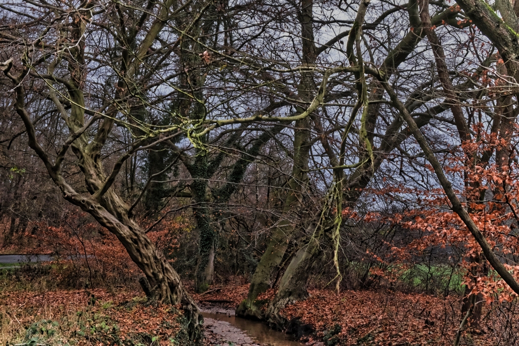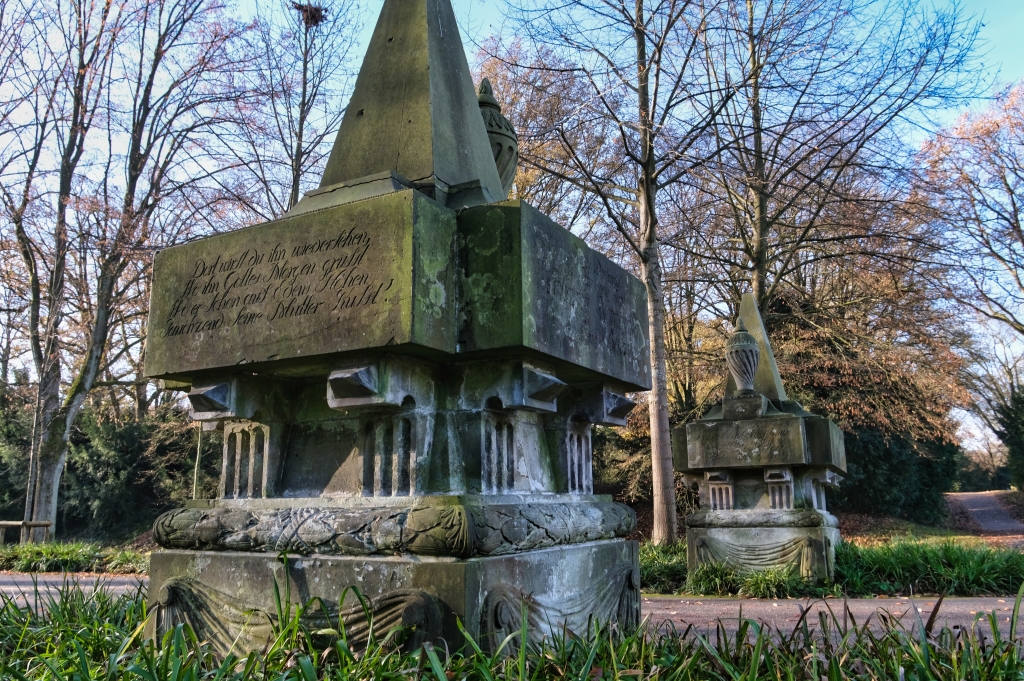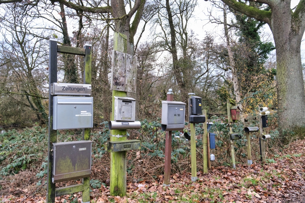 Gemäß Wanderplan des Wegegestalters würde der empfohlene Stadtrandwanderwege entlang zweier Kiesgruben, die mittlerweile als Freizeitareal umgewidmet wurden führen. Mit Wasser gefüllte Kiesgruben scheinen im Dezember nicht wirklich erbaulich zu sein, zudem auf dieser Tagestour fünf offizielle Stadtrandwanderrouten zusammengelegt wurden und daher eine zweckmäßige Routenoptimierung erforderlich war. So geht es direkt durch das Schweizer Viertel von Osterholz, denn hier haben immerhin 13 von insgesamt 21 Straßennamen einen Schweizer Bezug, wobei augenscheinlich die türkische Gastronomie und Geschäftswelt die Oberhand zu haben scheint. Man ist in diesem multikulturellen Viertel eben international aufgestellt. So lohnt es hier eine zweite Frühstückspause einzulegen, um mit einem hervorragenden Menemen und einem türkischen Tee den Körnerhaushalt wieder aufzufüllen. Durch das weitläufige Areal des Klinikums geht es durch den Friedhof Osterholz, eine außergewöhnliche und beeindruckende Friedhofsanlage. Alleen, Wassergräben und Seen bereichern die Parklandschaft was durch die erhöht angelegten Grabfelder, die selbst mit Eibenhecken eingefasst sind, zusätzlich akzentuiert wird.