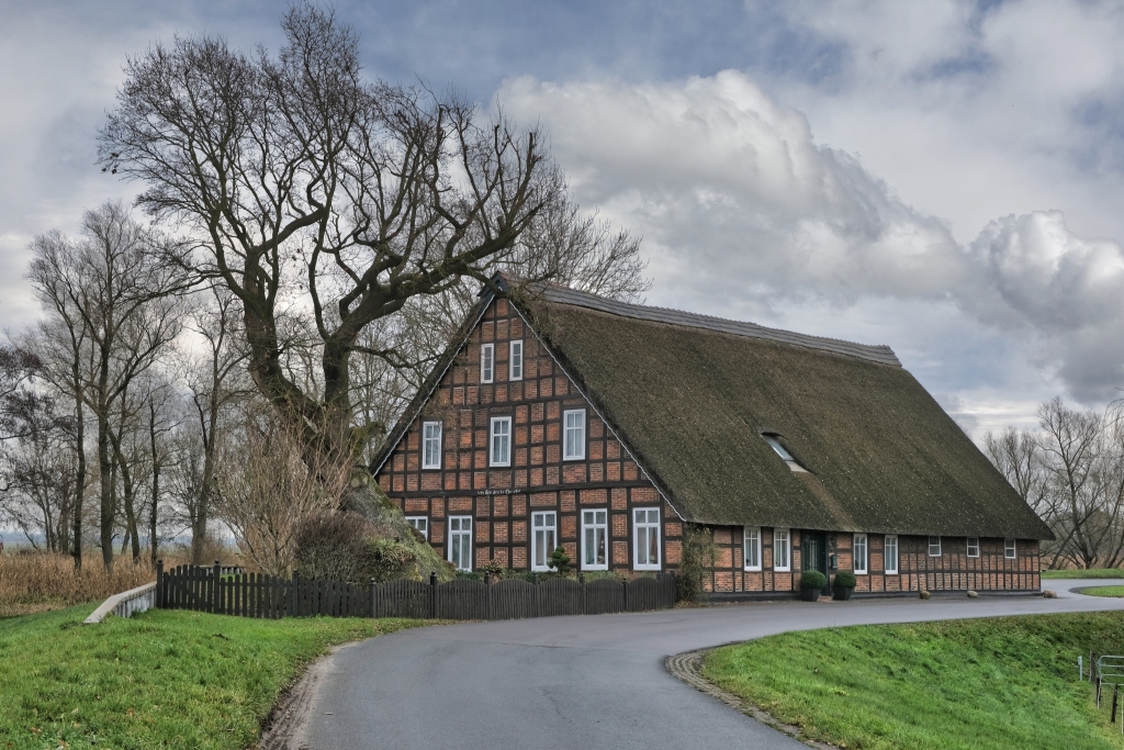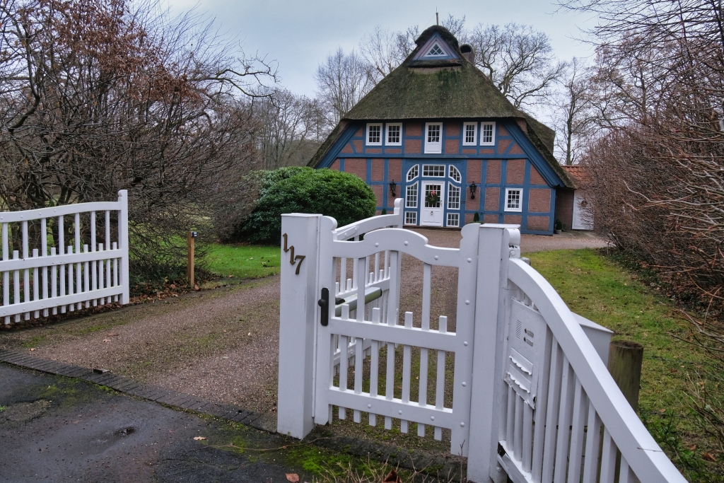 Vorbei an einigen imposanten reetsgedeckten Anwesen schwenkt man ein in den Flurweg der bezeichnender Weise “Auf der Alten Weide” heißt, und einmal mehr vermittelt, dass man sich hier im ländlichen Raum befindet. Zwei Landschaftsparks flankieren dabei die Wanderstrecke. Rechter Hand der Park Höpkers Ruh und linker Hand der Muhles Park. Ein Kurzabstecher durch den Ortsteil Oberneuland führt zur gleichnamigen Mühle und weiter zum Gut Hodenberg, ursprünglich als Adelshof errichtet, später als “Irrenanstalt” wie man damals umgangsprachlich psychiatrische Kliniken bezeichnete, umgewidmet, und nachfolgend vom legendären Reeder und Schiffsbauer Rickmers übernommen.